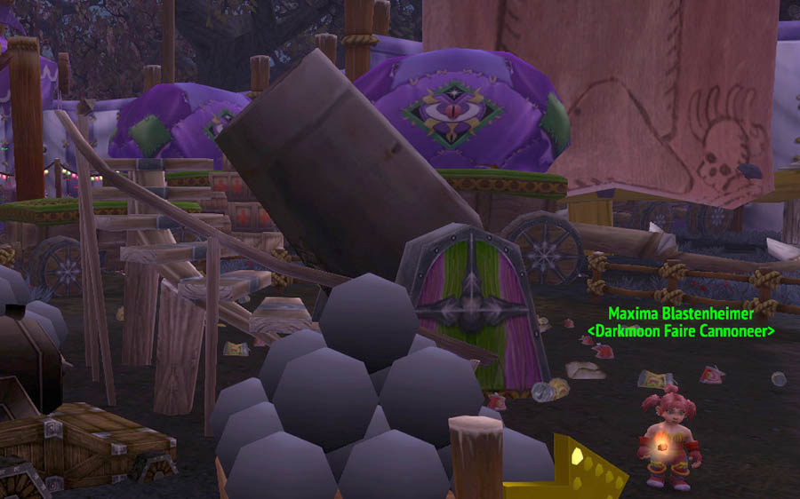 Second game to the right is the Humanoid Cannonball Challenge, where gnome Maxima Blastenheimer is more than a little eager to show off the payload capacity of her Blastenheimer 5000 Ultra Cannon. Slip her a Token and she’ll launch you across the Faire‘s grounds with a dispellable Wings buff – press 1 to dismiss the wings at any time.